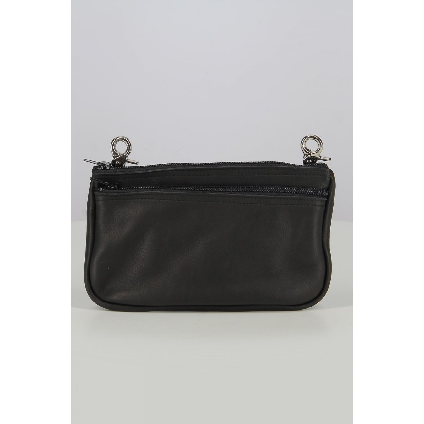 Description Beintasche aus weichem Leder mit schwarzen Karabinern