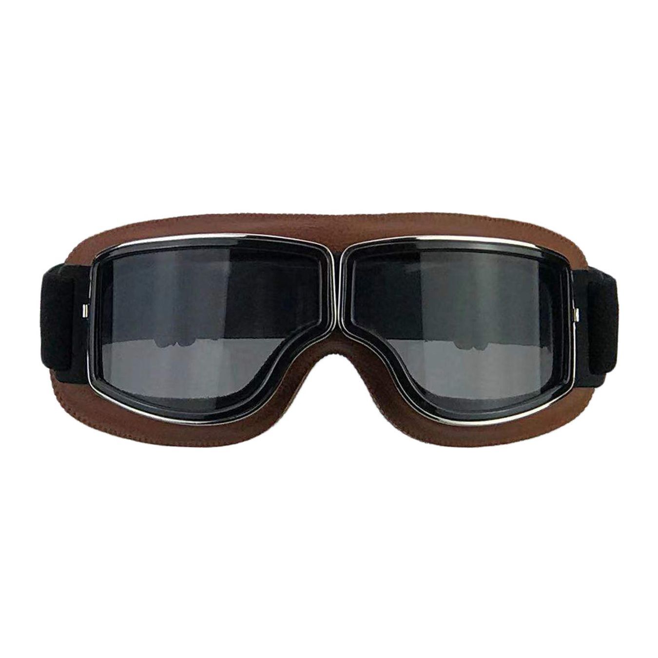 Brillen für Motorradfahrer, zertifiziert nach der europäischen Norm EN 1938:2010 "Persönlicher Augenschutz - Visierbrille für Benutzer von Motorrädern und Mopeds" Schwarzes Gelenkgestell für mehr Flexibilität und bessere Haftung im Gesicht. Weiche Innenpolsterung, bezogen mit schwarzem oder braunem Kunstleder, antiallergisch für maximalen Halt und Komfort. Weitwinkel-Okularlinsen für erhöhte Sichtbarkeit. Transparente, rauch- oder verspiegelte, kratzfeste Gläser. Gurt mit Verstellsystem.