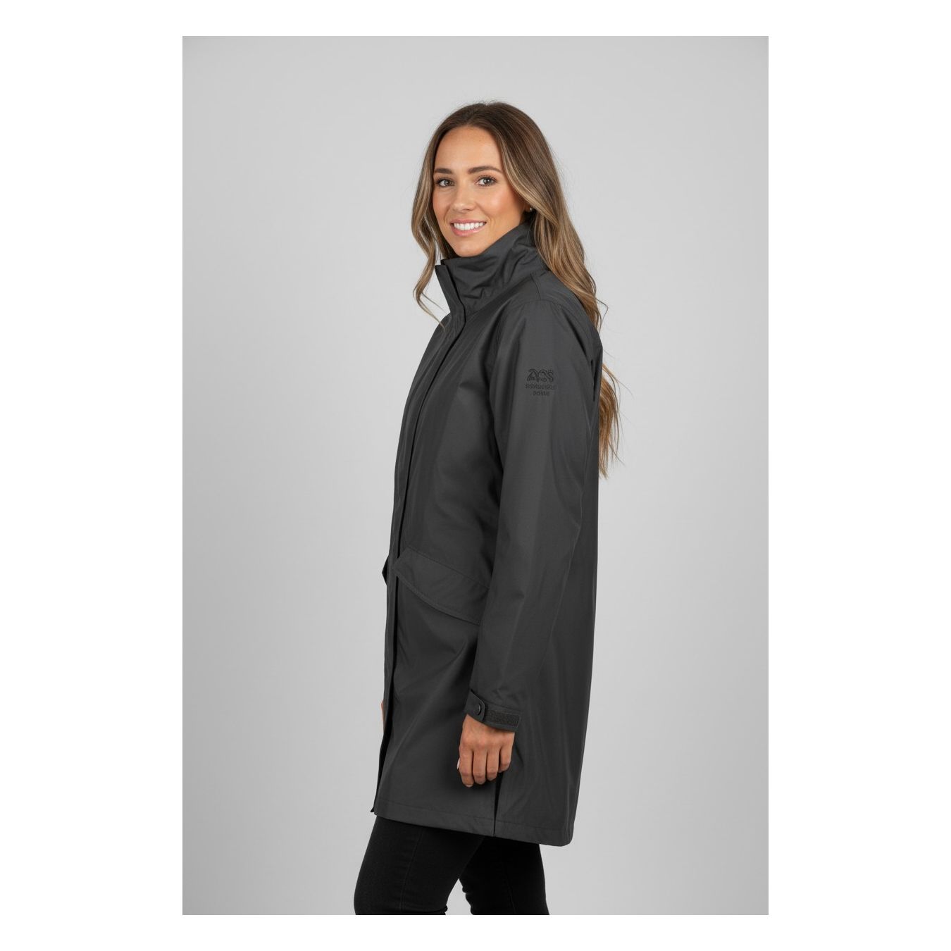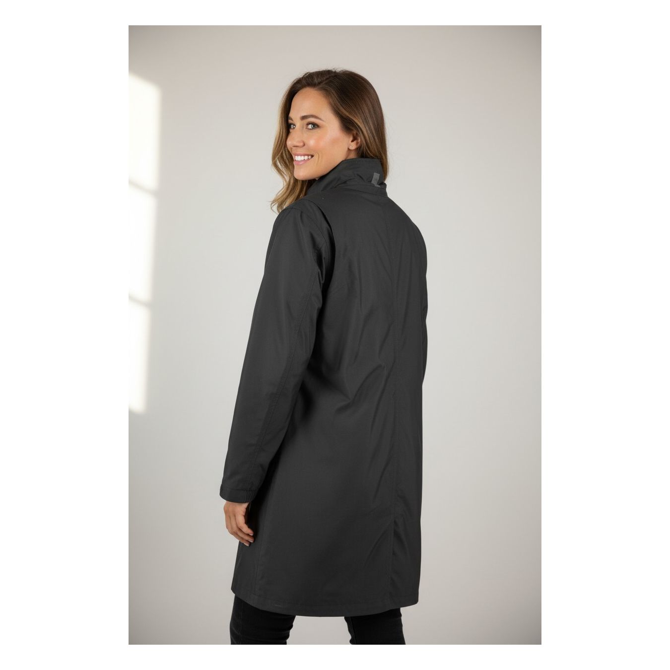 EINE NÜCHTERNE UND ELEGANTE DAMENOBERBEKLEIDUNG IN EINFARBIGEM SCHWARZ, DIE JEDEN TAG GETRAGEN WERDEN KANN UND FÜR STADT- UND AUSSERSTADTREISEN GEEIGNET IST. BEGÜNSTIGUNG VON THERMISCHEM KOMFORT UND SICHERHEITDuotex-Jacke