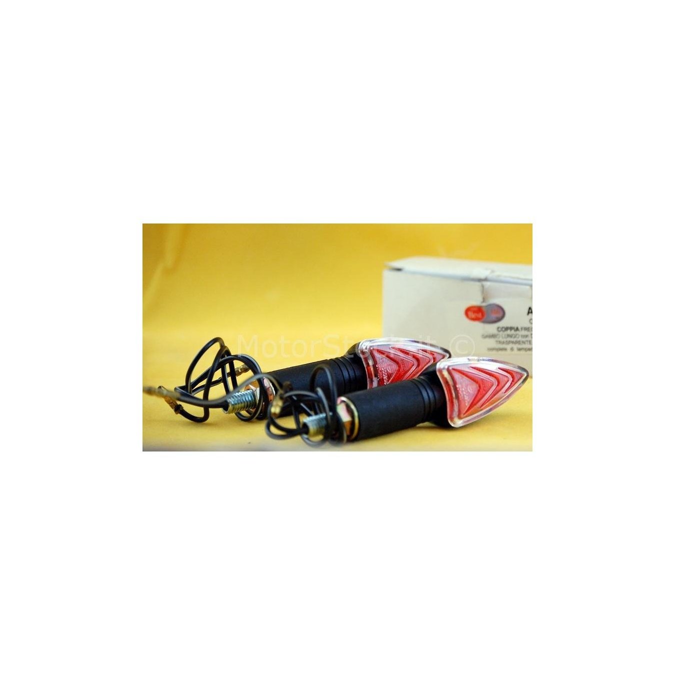 Paire de flèches de tige longues noires VIPER avec double lentille: extérieur transparent, intérieur orange. Complet avec lampes halogènes 12 volts - 21 watts - approuvé -- Marque