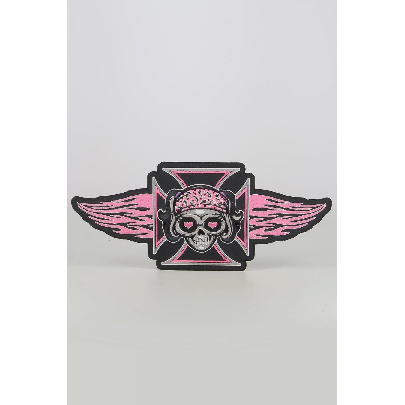 Description Menace mortelle Patch brodé de croix de fer rose