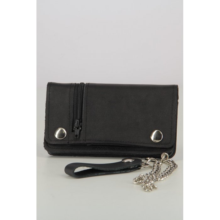 Portefeuille de moto en cuir véritable. Fermeture éclair latérale. Chaîne avec anneau de ceinture. Dimensions 6'' x 3 3/4- Marque