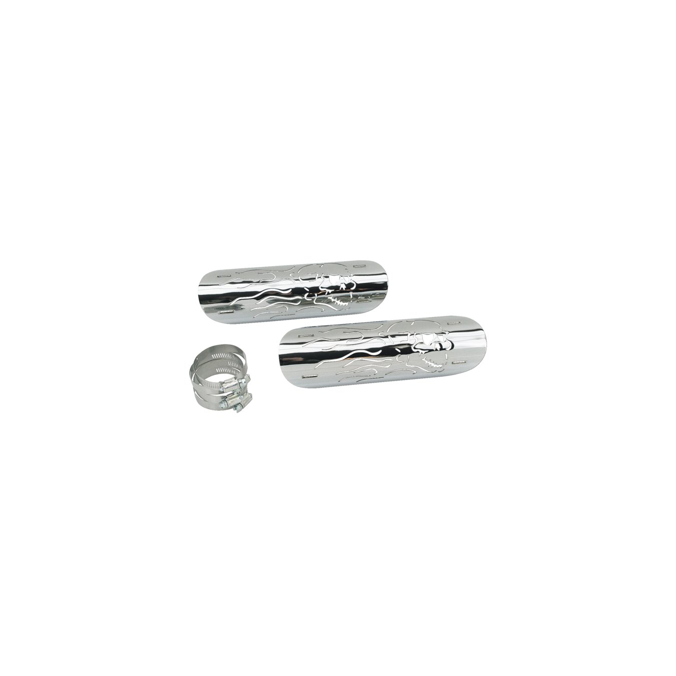 Description Bouclier thermique d’échappement chromé Flaming Skull