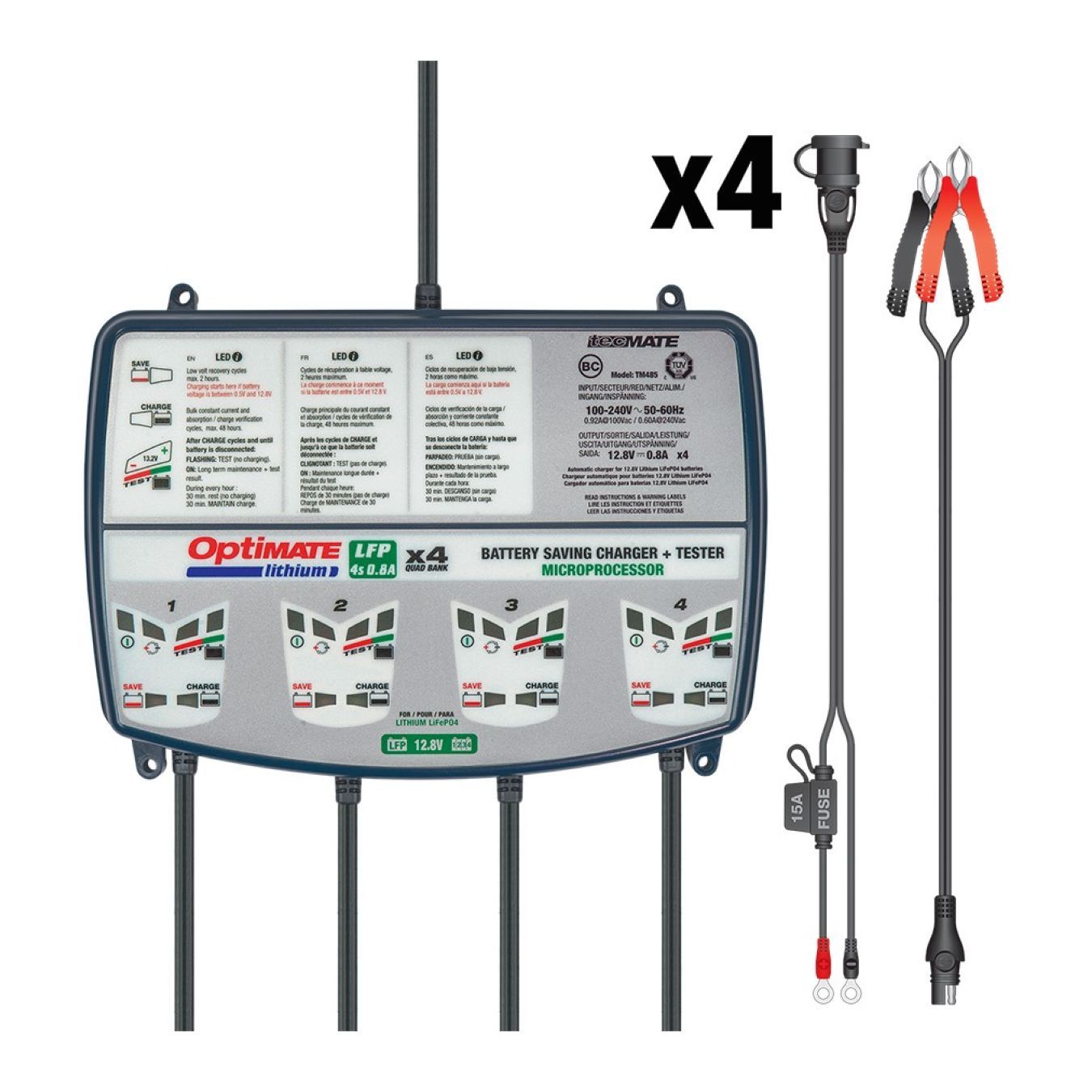 OptiMate Lithium 4s 0.8A quad bank è la scelta ideale per 4 batterie LifePO4 / LFP al litio da 12,8V/13,2V. – La scelta dei rivenditori di batterie!