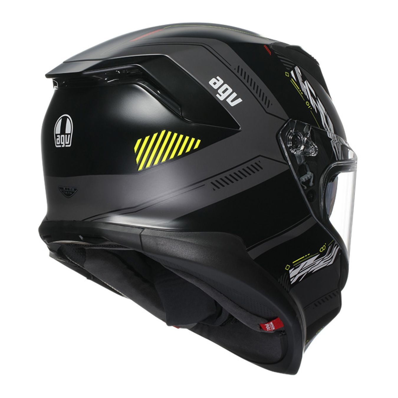 Sottoposto al rigido protocollo di progettazione AGV Extreme Safety, il K7 supera ampiamente tutti i test della normativa ECE22.06. Inoltre, il profilo salva-clavicola, ideato da AGV, riduce significativamente il rischio di danni alla clavicola in caso di impatto.