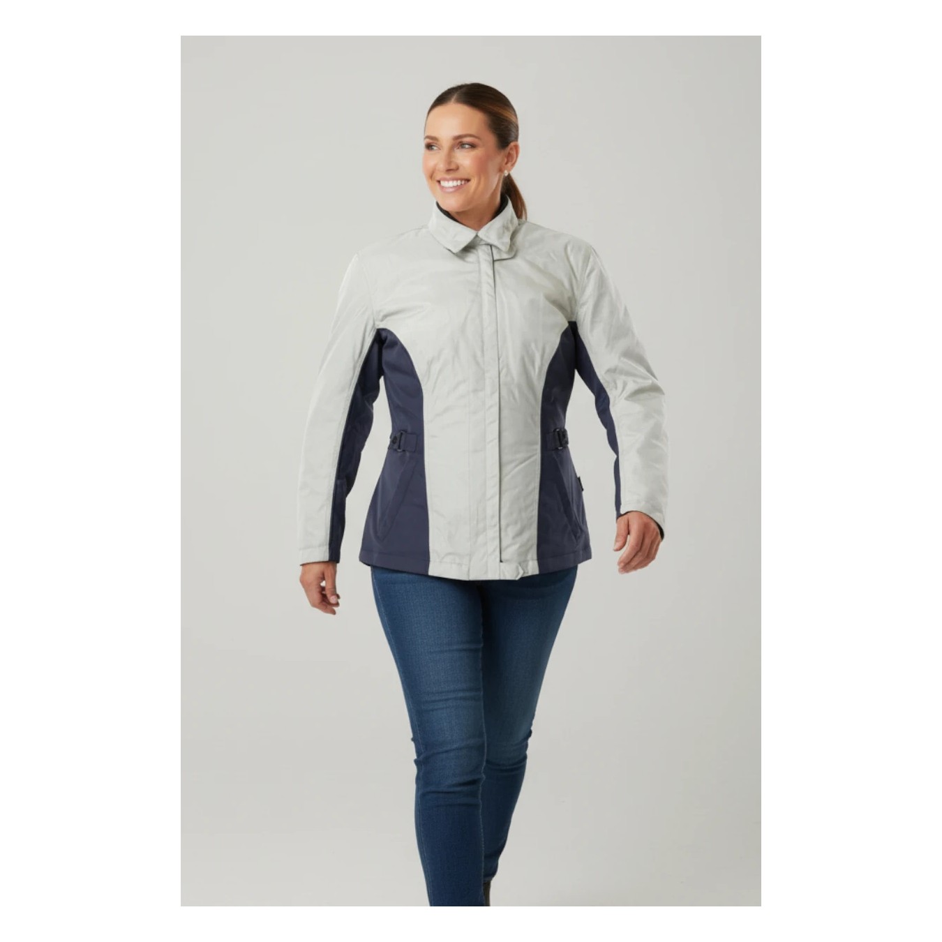 Giacca , impermeabile, antistrappo, traspirante, con protezioni spalle e gomito , imbottitura interna sfoderabile, colletto alto.