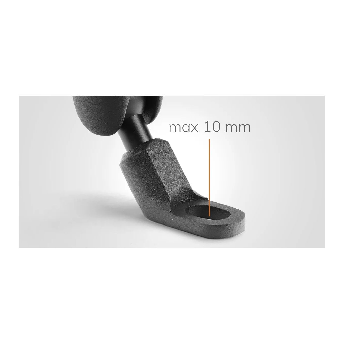 La sfera permette al porta telefono di essere completamente orientabile, consentendone l’utilizzo e la visualizzazione sia in verticale che orizzontale. La ghiera consente di bloccare la testa una volta individuata l’angolazione ottimale.